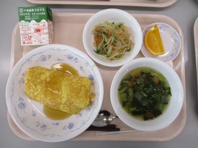 2月26日(木)おやつ~2月27日(金)昼食 公開日 2026/02/27 更新日 2026/02/27 昼食のご紹介 2月26日(木)おやつ黒糖パンケーキ、紅茶2月26日(木)夕食ごはん、かき玉汁、豚のしょうが焼き、さつまいもと昆布のにもの、白菜とじゃこの梅和え2月27日(金)朝食ごはん、豚汁、さばの文化干し、野菜炒め、にたまご2月27日(金)昼食中華風オムライス、牛乳、ひよこ豆スープ、中華サラダ、オレンジ写真はおやつ・夕・朝・昼の順です。 +1