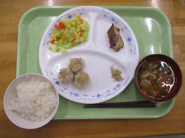 3月6日(金)おやつ~3月7日(土)昼食 公開日 2026/03/10 更新日 2026/03/09 昼食のご紹介 3月6日(金)おやつシュガーラスク、お茶3月6日(金)夕食ごはん、けんちん汁、魚のしょうが風味焼き、しゅうまい、コールスローサラダ、あまじゃっこ3月7日(土)朝食ごはん、みそ汁、鶏のかおり焼き、にびたし、ごまあえ、みかん3月7日(土)昼食ゆかりごはん、けんちん汁、牛乳、ゼリーフライ、切り昆布のにもの、芋ようかん写真はおやつ・夕・朝・昼の順です。 +1