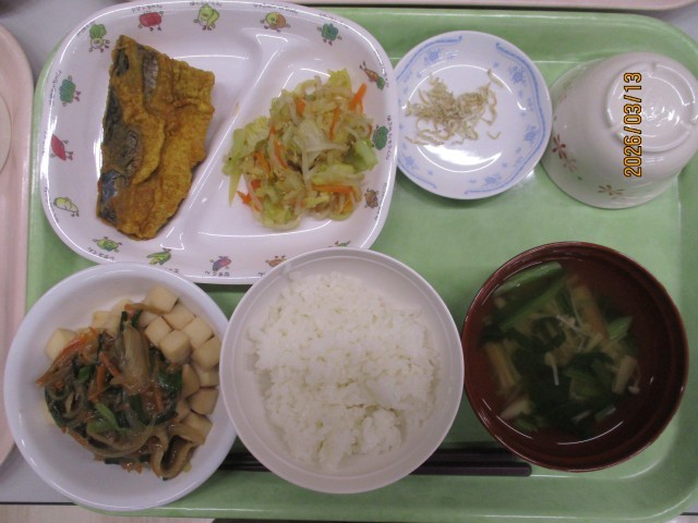 ごはん、すまし汁、さばのさらさあげ、豆腐のあんかけ、ごまあえ、あまじゃっこ