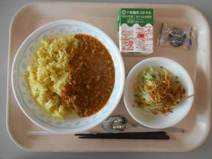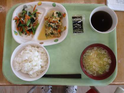 9月24日(日)夕食〜9月25日(月)昼食 公開日 2023/09/27 更新日 2023/09/27 昼食のご紹介 9月24日(日)夕食 ごはん、さわにわん、鮭の味噌マヨ焼き、揚げワンタン、カレー和え、あまじゃっこ 9月25日(月)朝食 ごはん、みそ汁、卵とじに、小松菜炒め、のりの佃煮 9月25日(月)昼食 牛乳、ドライカレー、ごぼうのぱりぱりサラダ、プルーン 夕 朝 昼