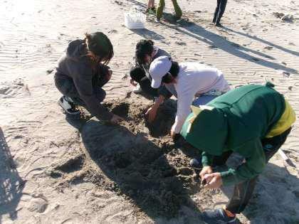 学校の前にある砂浜で、焼きいも会を行いました。