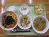 12月15日(日)夕食 ビビンバ、野菜スープ、コーンサラダ、あまじゃっこ、フルー...
