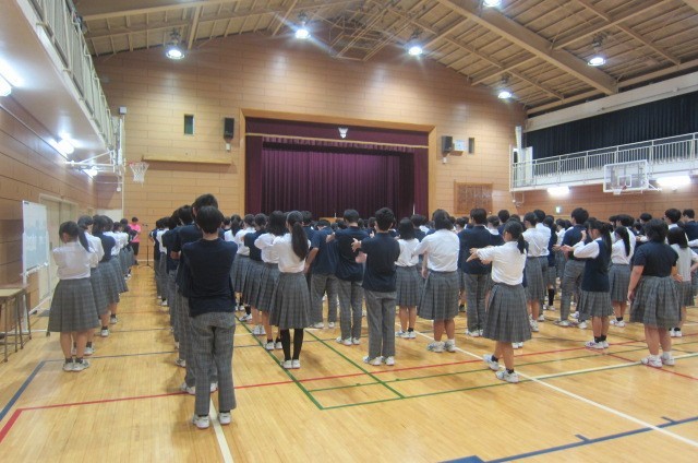 全校朝礼 公開日 2025/10/06 更新日 2025/10/06 できごと 10月6日(月) 月はじめの月曜日は全校朝礼が行われます。今月末の文化発表会に向けてのクラスでの合唱練習が始まります。校長先生からは、取組を通して将来社会生活を送っていく中で必要となる、自分と違った意見や価値観の人との折り合いをつけていく力をつけていきましょうとお話がありました。早速1校時には合唱の割り当て練習が始まり、校内に歌声が響き渡っていました。