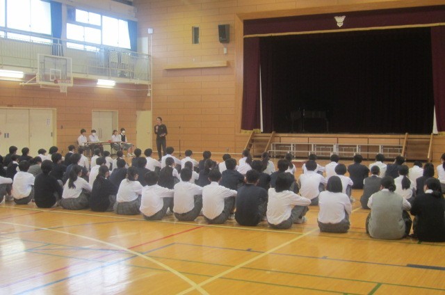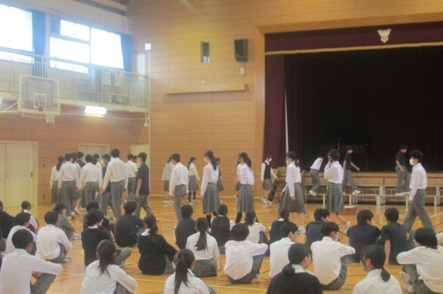 8年生文化発表会学年練習 公開日 2025/10/16 更新日 2025/10/16 できごと 10月16日(木) 文化発表会のクラス合唱に向けて、学年練習を行いました。8年生は5校時に体育館に集まり、学年合唱の進め方やクラス合唱での入場の仕方を確認しました。入退場も含めて保護者や学校関係者の方に、板二中の取組の様子を見ていただく機会です。素敵な発表会になるように一人一人が意識して取り組んでいきましょう。