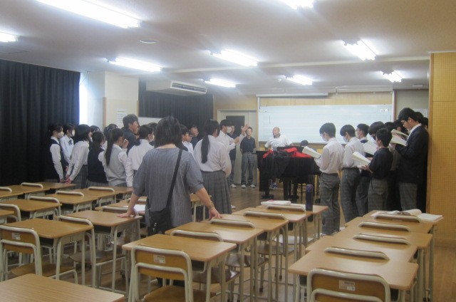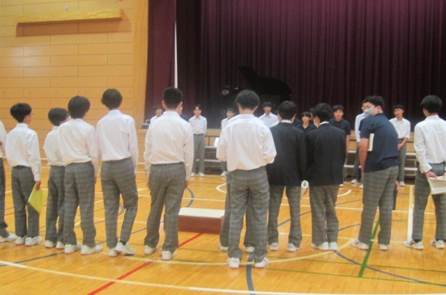 今月28日の文化発表会に向けて、毎日クラス合唱の練習で校内に歌声が響いています。今日の1校時は全校一斉に練習の時間となりました。体育館や音楽室が割り当てられたクラスは、上級生のクラスを招いて合同練習を行っていました。上級生の歌声を聴くと、自分たちももっと頑張らなければと練習に熱が入るようです。上級生も後輩たちに聴かせる責任感から、真剣さが増していました。来週一週間さらに歌声に磨きがかかってくることを期待しています。