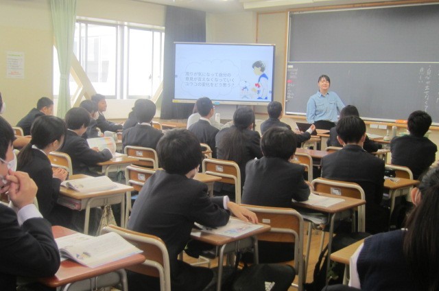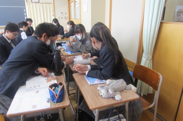 7年生道徳の授業 公開日 2025/10/31 更新日 2025/10/31 できごと 10月31日(金) 7年生ではクラス担任の先生だけでなく、副担任の先生や他クラスの担任の先生がローテーションで道徳の授業を行っています。それぞれの先生が自分の選んだ題材で、生徒に考えてほしい内容や気付いてほしい道徳的価値について授業を行っています。友情、自分を大切にすること、社会のしきたり などそれぞれのテーマについて教員とのやりとりや班での話し合いなどを通じて考えを深めていました。