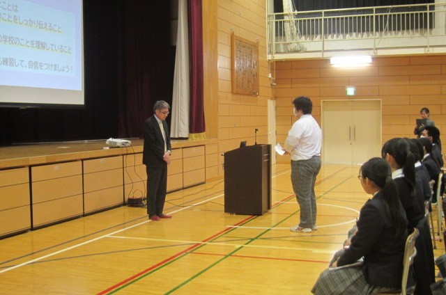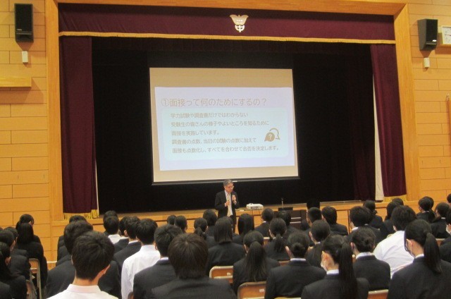 9年生面接講座 公開日 2025/11/18 更新日 2025/11/18 できごと 11月18日(火) 9年生は6校時に体育館で面接講座を行いました。小石川淑徳高校の副校長先生に講師としてお越しいただき、面接の心構えや礼の仕方、受け答えの注意点等についてお話しいただきました。進路先のことをよく知って、どんなところが自分に合っていると思うのかを言えるように準備を進めておきましょう。