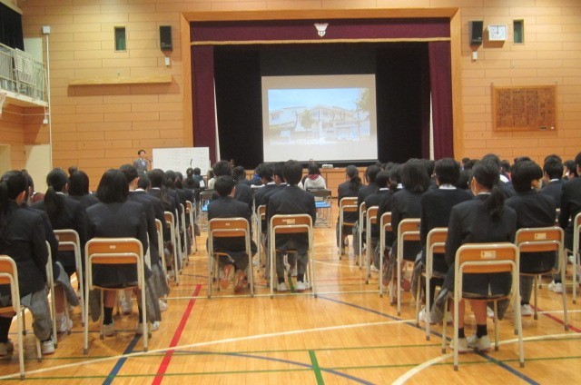 学びのエリアの板五小の6年生をお迎えして、本校7年生との交流会を行いました。はじめに映像での板二中学校生活の紹介を行い、その後班ごとに小学生の質問に中学生が答えるという形式で交流を進めました。小学生は実際に中学生の話を聞いてみることで、中学校生活について実感がわいてきたことと思います。中学校の7年生もいよいよ後輩が入ってくるということを意識できたことで、8年生に向けて自覚をもって取り組もうという気持ちになったことでしょう。朝早くから引率してくださった板五小の先生方、ありがとうございました。