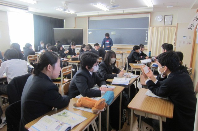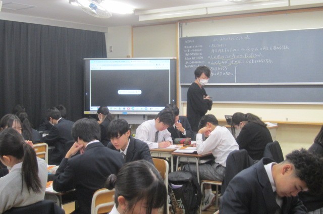 道徳の授業 公開日 2026/01/09 更新日 2026/01/09 できごと 1月9日(金) 今日から本格的に授業が開始になりました。最初の1校時は全校で道徳の授業です。タブレットで意見を集約したり、グループで考えさせたり、班でロールプレイをさせたりなど、各教員が進め方を工夫して授業が行われていました。まだ生活リズムが戻っていないのか眠そうな生徒もいます。早く学校生活のリズムに戻しましょう。