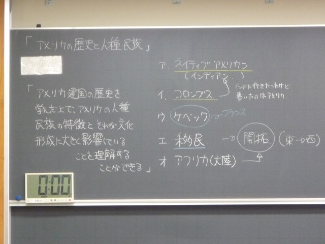 1校時の7年B組社会の授業です。生徒の皆さんへアメリカについて知っていることの発言を促すと現在の大統領関連のニュースについての発言が多くありました。このような発言を切り口として現在の世界情勢を踏まえながら、アメリカの歴史とその背景について理解を深めることができました。ICTを中心に多くのイノベーションを起こしてきたアメリカに脈々と受け継がれるフロンティア精神と併せて、人種差別等の負の側面を学ぶことでこれから生徒の皆さんが向かう多様な社会への対応力を培ってほしいと願います。