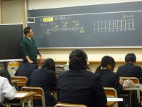 2校時の9年B組の様子です。体育の授業でサッカーに取り組んでいました。ウォーミングアップでは5周走ってから、パス交換を2人から3人組で行い、体を十分にほぐしてからミニゲームを行いました。ハードルをゴールとして3対3や4対4のゲームを楽しみました。ボールをしっかり見る、止める、蹴るの基礎的な動きと密集しがちだったので広がってスペースを使うよう先生からコーチングを受けてゲームの質を高めることができていました。