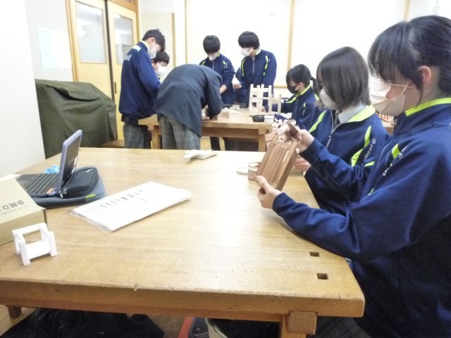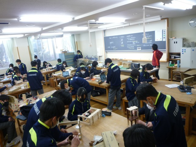 多くの生徒がワックスを塗り込む作業まで進んでいました。自分で設計して組み立て完成させた作品です。多くの生徒が製作の喜びを感じていていました。