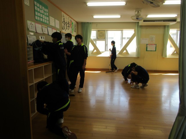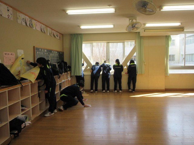 9年生清掃活動 公開日 2026/03/17 更新日 2026/03/17 できごと 3月17日(火) 9年生は3年間お世話になった学校をきれいにしようと、清掃活動を行っていました。思い出の詰まった教室では掲示物を外し、床をきれいに磨いていました。体育館前や階段などみんなが使う場所も分担してきれいにしました。残り少ない中学校での生活、仲間との時間をともに活動することで充実させています。