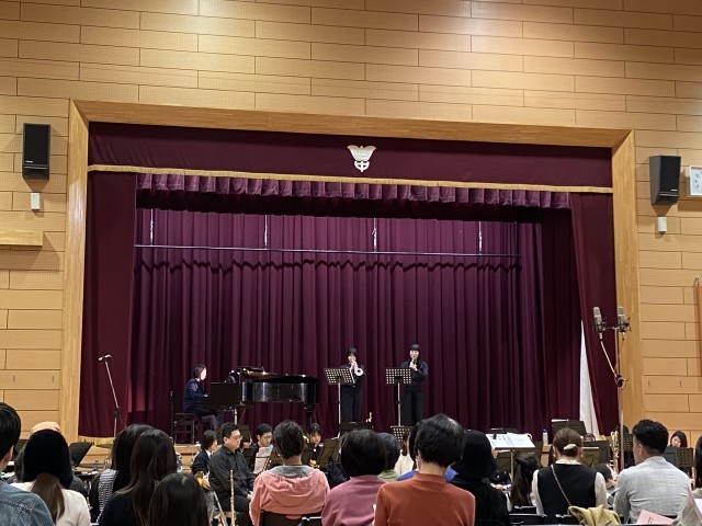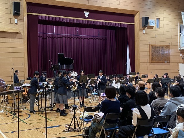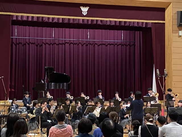 吹奏楽部がスプリングコンサートを開催しました。今年度は部員が増え、充実した編成になりました。さらに今日は部員の保護者の方やご指導いただいているコーチの方にも加わってもらい、コンクールで演奏した曲や最近のヒットソングまで、会場と一体となって楽しいコンサートとなりました。ご来場いただいた皆さんありがとうございました。