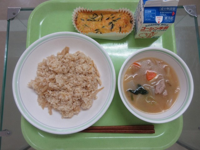 筍ご飯・ひじき入り卵焼き・豚汁・牛乳