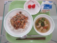 ハヤシライス・さつま町産パンプキンサラダ・果物(メロン)・牛乳