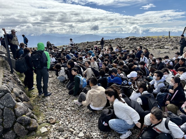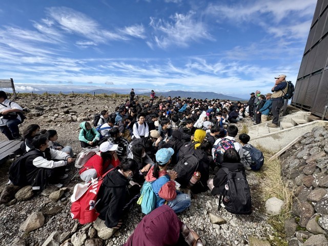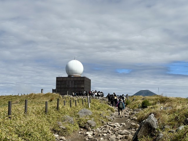 山道を登っていると汗ばむほどでしたが、山頂では強風が汗を奪います。
