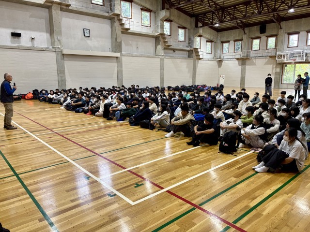 宿舎に着いて、すぐに体育館で行った開校式の様子です。