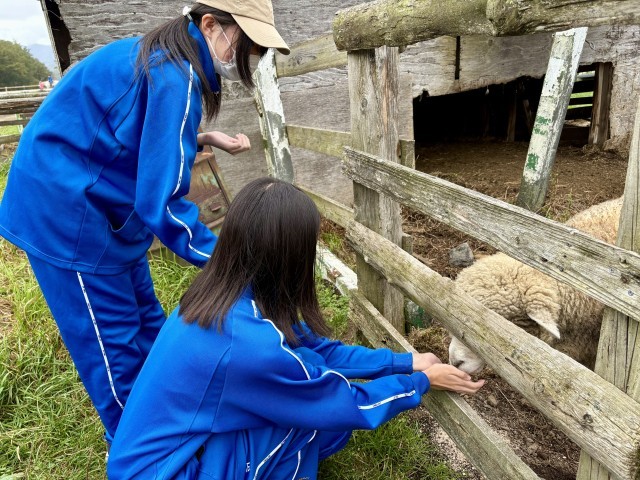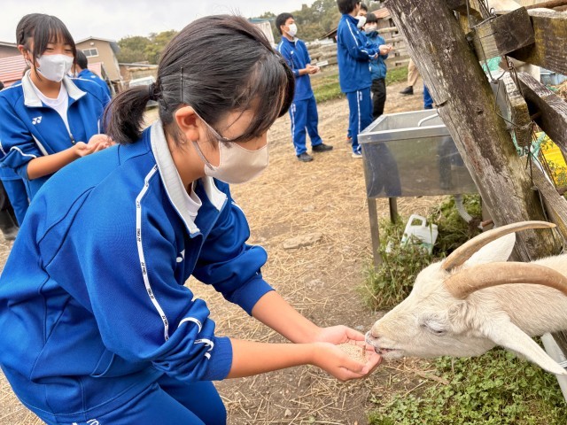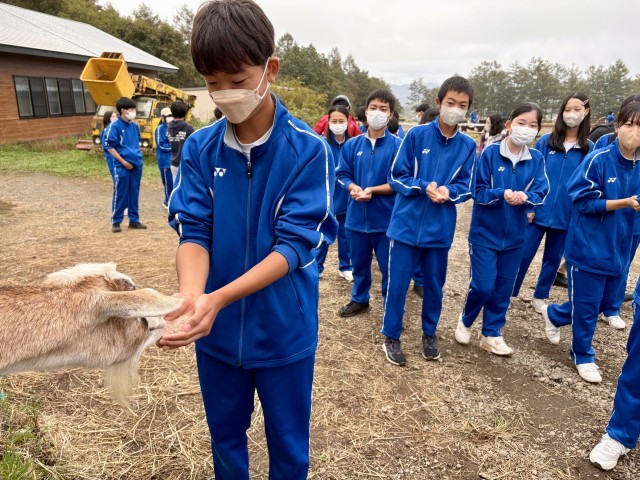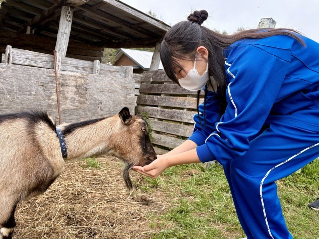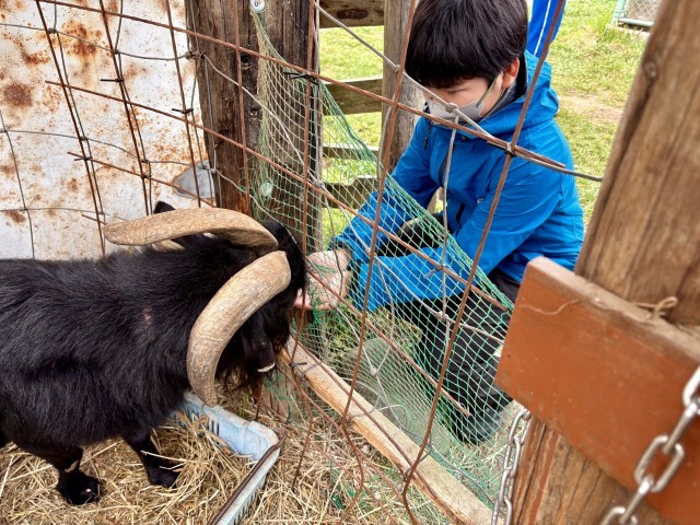 写真は、3組の皆さんです。ヤギやヒツジなど、家畜のエサやり体験中です(記事に隠れた写真は【➕】をクリックしてください)。