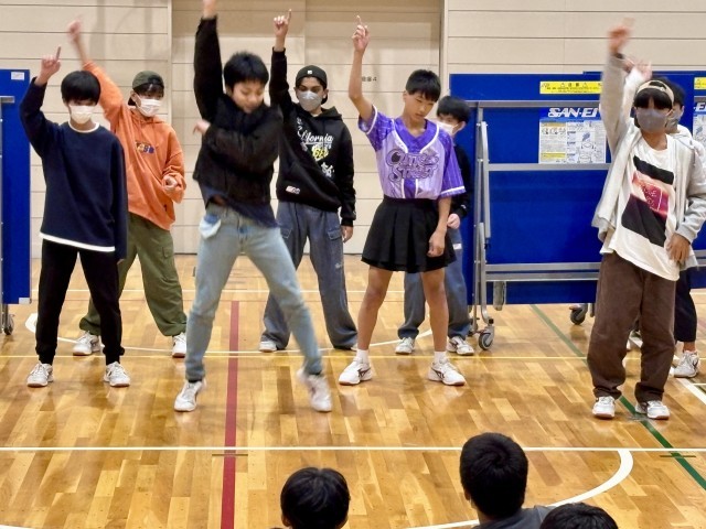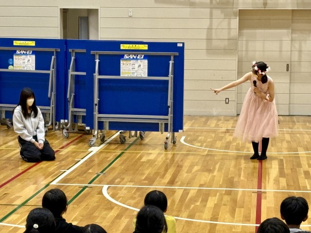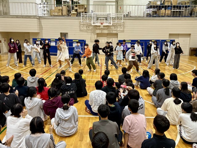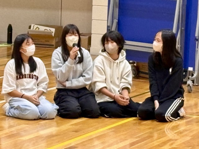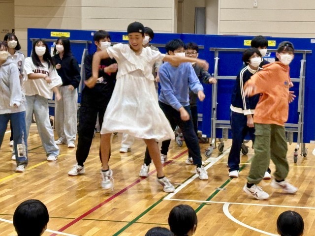 写真は、1組の出し物です。「恋せよ乙女イン八ヶ岳」と題して、移動教室で恋バナに花を咲かせる女子たちが見た夢?幻?現実?を、コント&ダンスで表現しました。