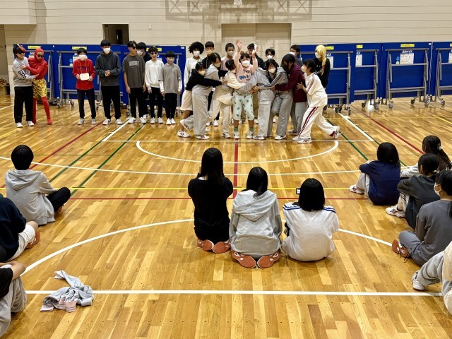 写真は、3組の出し物です。現代版「桃太郎」のコントでした。最後は、担任の先生も登場されて、盛り上がりました。
