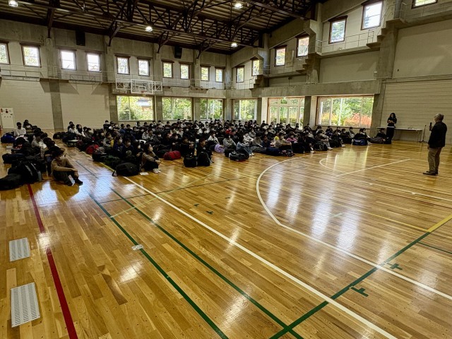 宿舎の方からご挨拶をいただき、代表生徒が挨拶とともにお世話にになった職員や看護師さん、カメラマンさんにお礼を述べました。