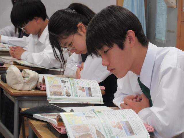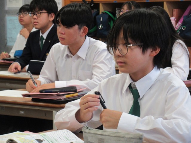 『遣唐使と天平文化』の学習です。教科書には、1か月ほど前に9年生と修学旅行で見学した東大寺の大仏が掲載されています。その大仏像が造立された理由を、資料「大仏造立の詔」から読み解きました。