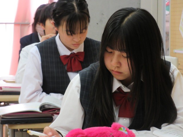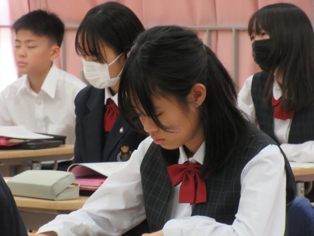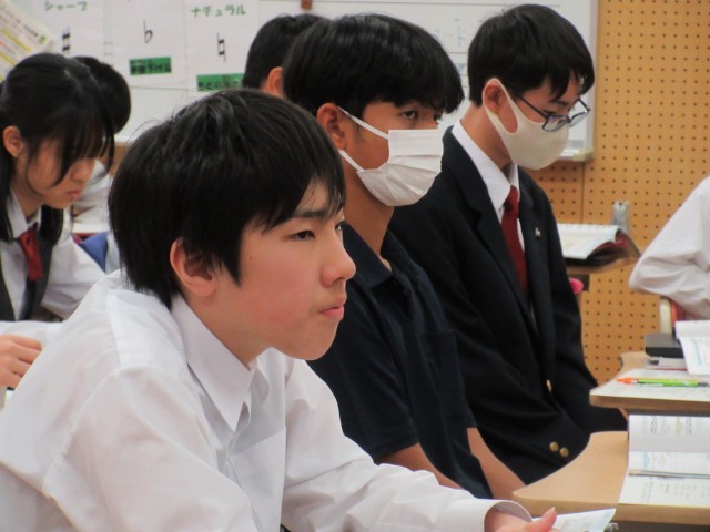 文化祭前は合唱練習を続けていた音楽の授業ですが、文化祭が終了した現在はどのような授業をしているのでしょう? などと思いながらお邪魔したところ、『小フーガ ト短調』(J.S.バッハ)の鑑賞学習に取り組んでいました。