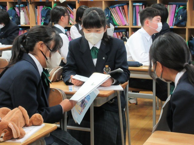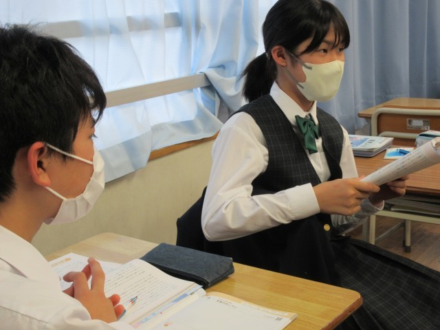 しかし、A選手を批判する書き込みに冷静さを失い、アンチファンと過激な言葉の応酬をしてしまいます。授業では、そんな【私】の姿を通して「多様なものの見方・考え方をするために大切なこと」について考え、意見交換しました。