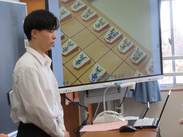 スライドも交えながら、習った文法を生かして8文以上の英文で紹介します。着物や扇子などの服飾、柴犬や桜などの動植物、お節料理や団子などの食べ物など、調べたテーマもバラエティーに富んでいました。
