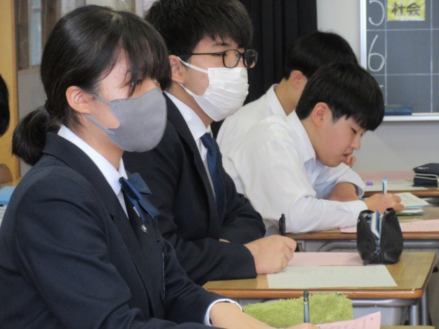 9年1・2組 英語(少人数)の授業の様子です。