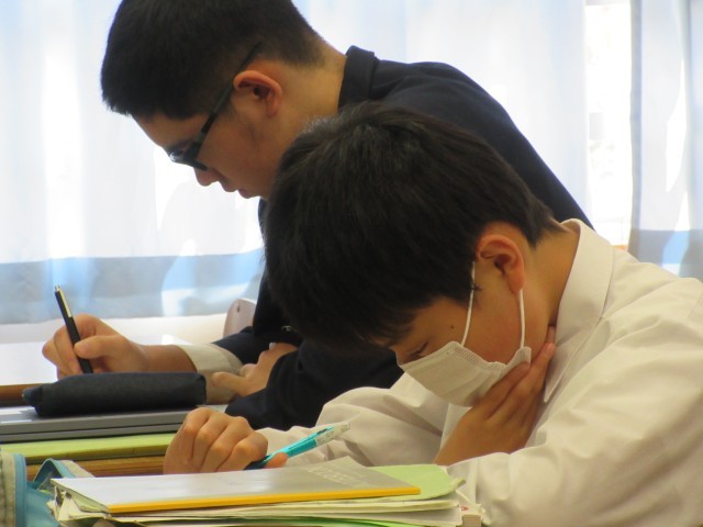 この時間は、そんな円に関する最初の学習『円周角の定理の利用』を取り上げていました。「円周角の定理」は、数学の苦手な私もうっすら覚えています円周角の定理とは【1つの弧に対する円周角の大きさは一定であり、その弧に対する中心角の半分である】というものです。それを確認した後、角度を求める演習に取り組みました。