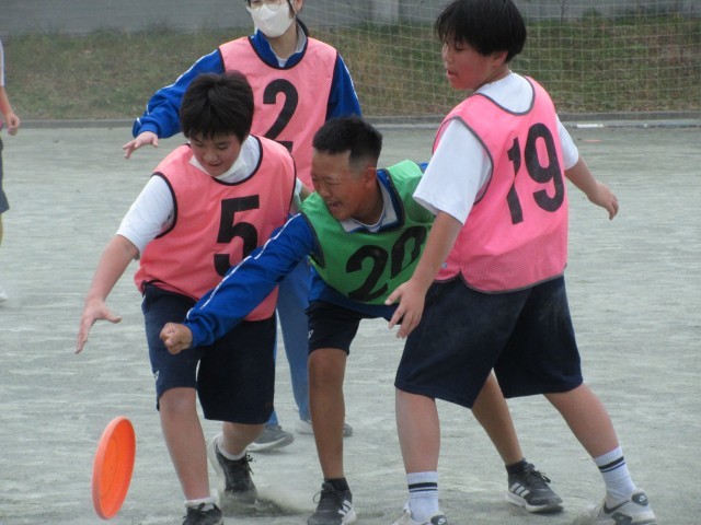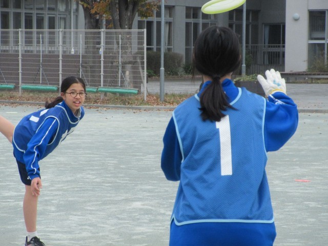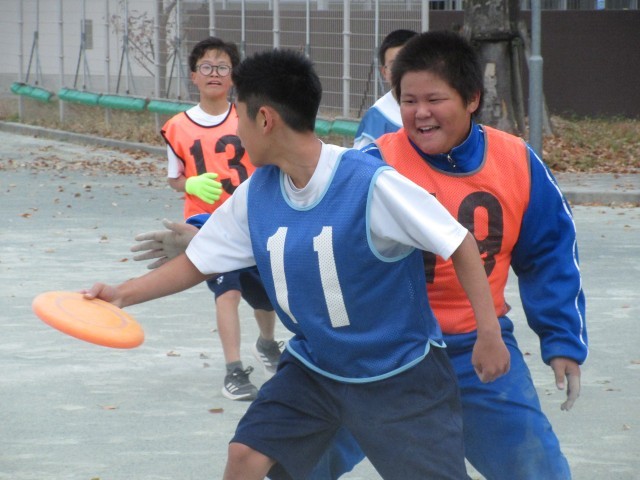 ディスクの投げ方やキャッチの仕方、ポジショニングなど基本的な練習を重ね、現在はゲーム練習ができるまでになりました。相手ディフェンスをかわして得点エリアの味方にロングパスが通った時の喜びは、また格別ですね。そのように上達した『アルティメット』も今週で終了し、来週からはまた新しい種目に取り組むそうです。