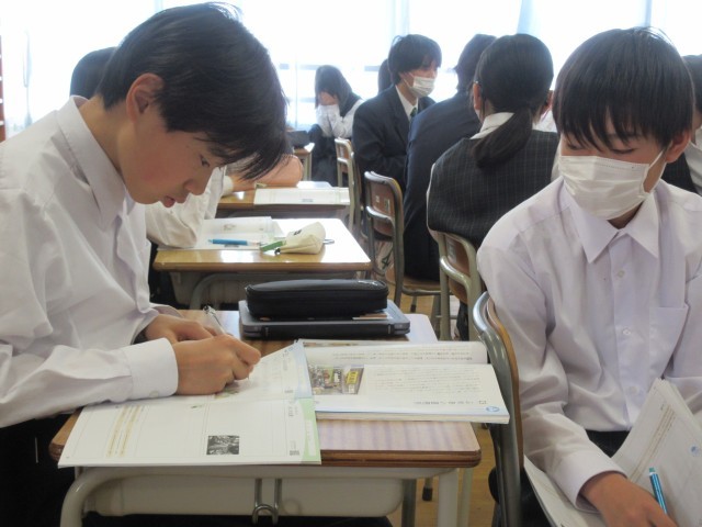 授業では、女性が直売所に野菜を出す思い、妹から助言されたときの思い、これからも販売を続く思いについて考えました。そして、最後に「きまりはどこまで必要か」について考え、友達とも意見共有しました。本校のたった1つの校則『 Be Gentleman(紳士であれ)』とも関連付けていたので、読み物を自分事としてとらえられていました。