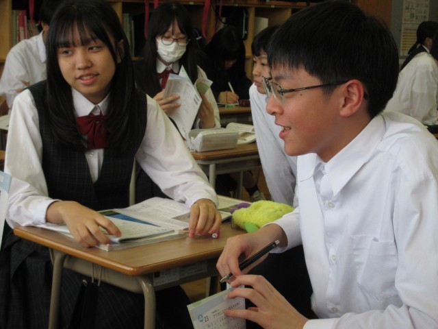 【国際理解・国際貢献】をテーマに、教科書の『アフガニスタンの人々と共に』という読み物を使った授業です。医師としてパキスタンにわたった中村哲さんは、やがて隣国アフガニスタン用水路の建設に従事するようになります。