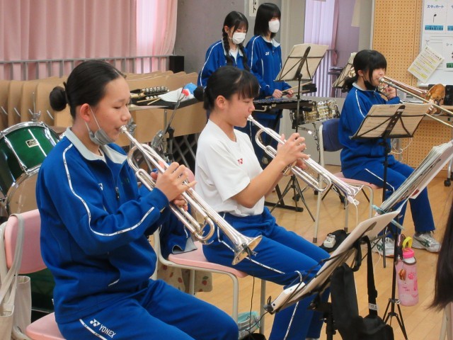 本日は部活動指導員の先生もお越しになり、指導をしてくださっていました。各自で準備・音出しをしてから、全員そろっての基礎合奏、さらに個人練習やコンテストに向けてのグループ練習など、時間を区切ってメリハリのある練習に取り組んでいます。