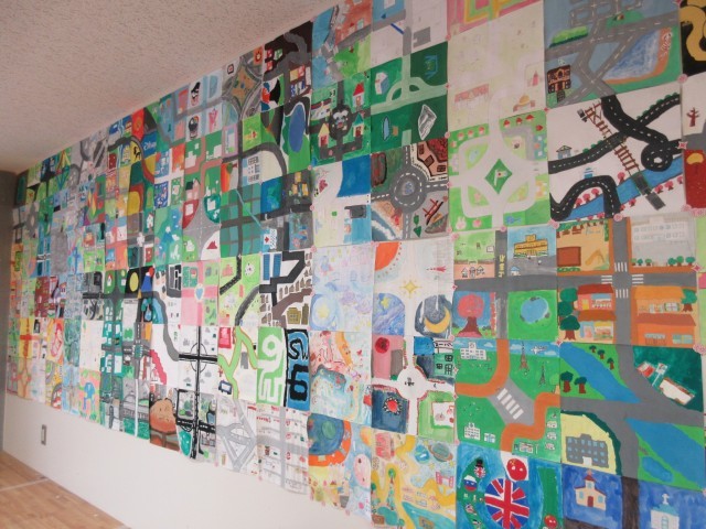 【写真・上】7年生の共同作品『地図』です。