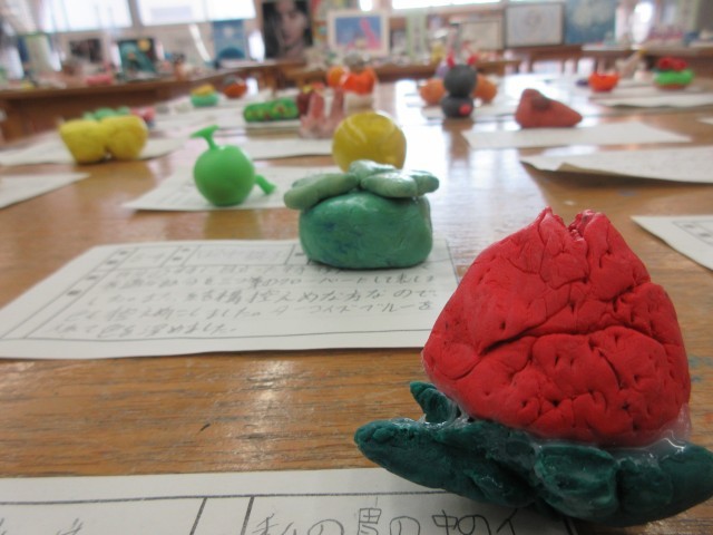 各自が自由な発想で描いた地図を、クラスメイトの地図と接続させました。意外な組み合わせが、不思議な調和を生んでいます。この他にも、デッサンや粘土造形が展示されています。