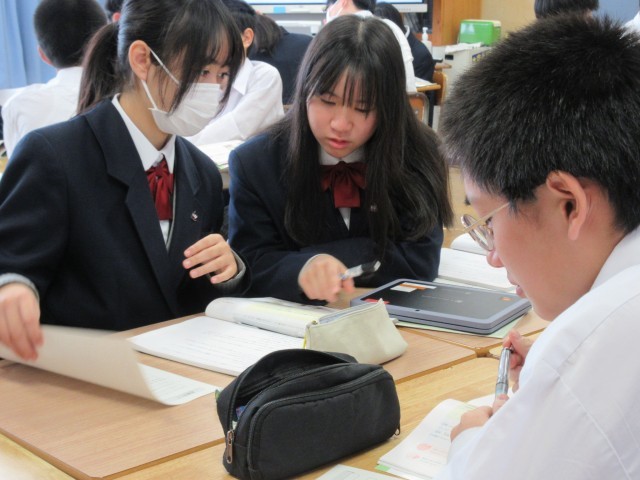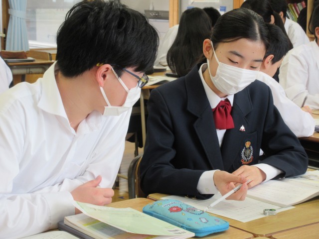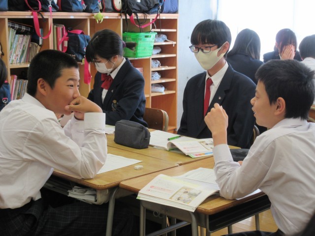 授業では、【私】たちがそのメッセージに込めた思いについて考えました。また、避難所も含め1つの集団で、皆が調和のある充実した生活を送るために必要なことについて、友達と意見交換しました。