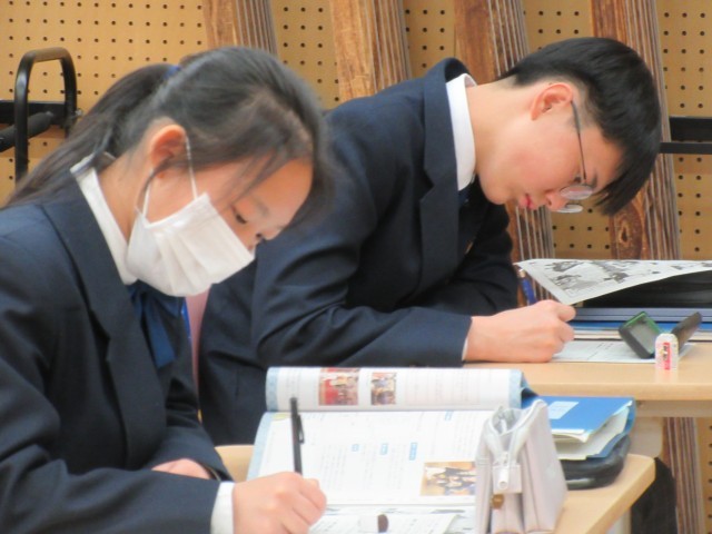 歌舞伎の演目『勧進帳』の鑑賞学習です。追手から逃げる源義経の家来である弁慶と、関所の番人である富樫左衛門のやり取りを描いたDVDを視聴し、ワークシートに鑑賞記録や感想をまとめました。では、ここでKMT(校長ミーニング・タイム)として、猛者(もさ)として知られる「弁慶」の慣用句を2つ紹介します。