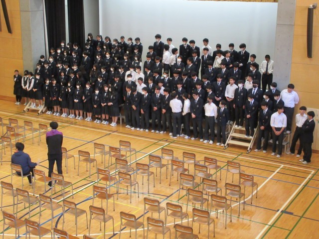 【写真・上】9年生・学年集会(合同学活)の様子です。