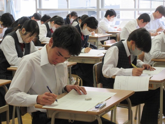 学年末考査2日目の本日は、数学・音楽・保体のテストが行われました。
