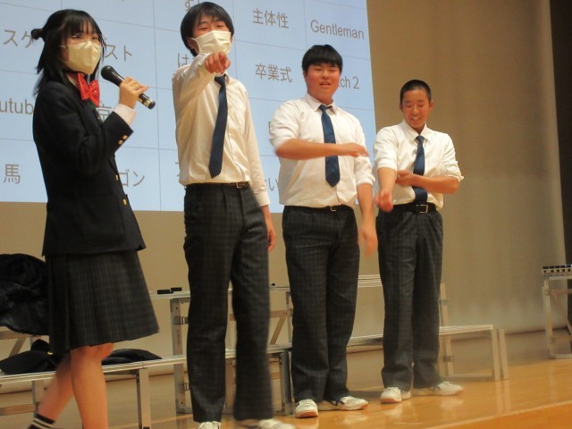 7・8年生はそれぞれ心のこもった合唱と9年生へのメッセージを贈り、生徒会企画のクイズや選ばれた9年生を交えてのパフォーマンスも大いに盛り上がりました。そして、下級生へのお返しに歌ってくれた9年生の合唱は、圧倒的な迫力で聴く者を魅了しました。きっと7・8年生は「いつかは自分たちもあんなふうに歌いたい」と思ったでしょう。