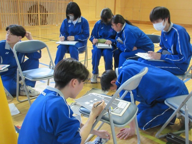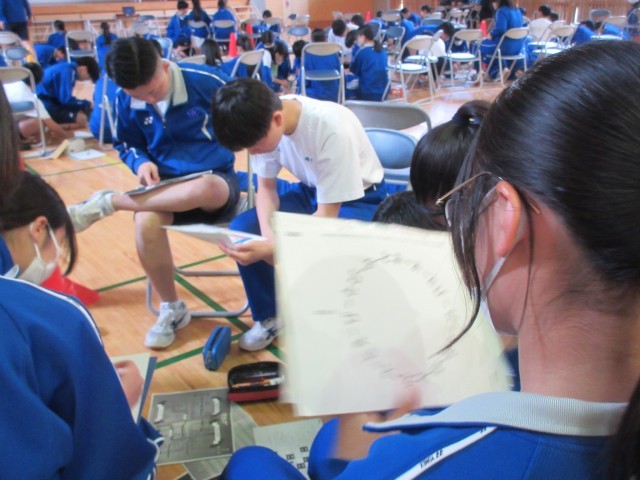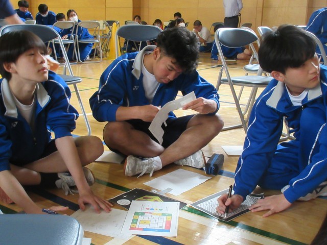 迷路や暗号や乱数表のような図など、いくつかの謎解き資料をもとに班員全員で脱出の知恵を出し合っていました。SBS班や先生班も頑張っていました。(写真の【+】マークをクリックすると、他の写真もご覧になれます)