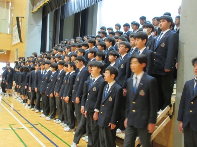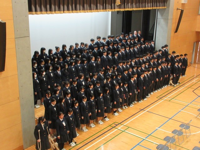 本日1時間目は卒業文集やアルバムのサインページが配られ、各教室でサインを交換し合うなどの和やかな光景が見られました。2時間目以降はそんな雰囲気から一転して厳粛な雰囲気で式練習等を行い、5時間目は予行です。表情にも良い意味での緊張感が浮かんで見えました。