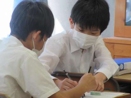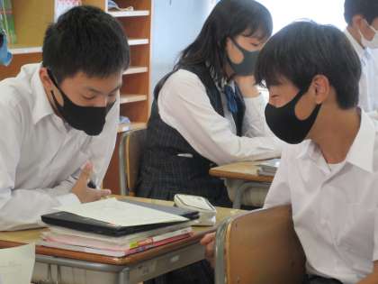 なお、先週感染症ガイドラインが一部改訂され、制限時間と様態を考慮すれば、緊急事態宣言下でも話し合い活動ができるようになりました。この授業でも早速ガイドラインに沿って、アウトプット活動が行われていました。