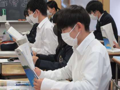 2日連続で、このクラスの国語の授業を取材させていただきました。本日の授業が、担当の先生の研究授業を兼ねていたからです。ただし、学習内容は昨日(ポスター製作)と一転して、古文『おくのほそ道』でした。
