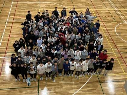 レクリエーション大会の最後に、学年全員で記念写真を撮りました。