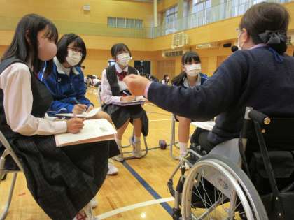 本日は、探求のテーマを決め、それを伝えたい対象者を選定しています。そして、交通事故で半身不随となり車椅子生活を送られている方(区内在住)と、その支援に当たられているNPOの方にお越しいただきました。