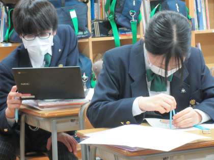 都立高入試対策になることはもちろん、その16問の中から期末考査に出題される問題もあるからです。解答と解説は、今週の土曜ICT学習支援において、数学科のClassroomに投稿されます。平日の授業と土曜日の家庭学習を使い分ける学習支援は、「東京で一番」の手厚さと言えるでしょう。